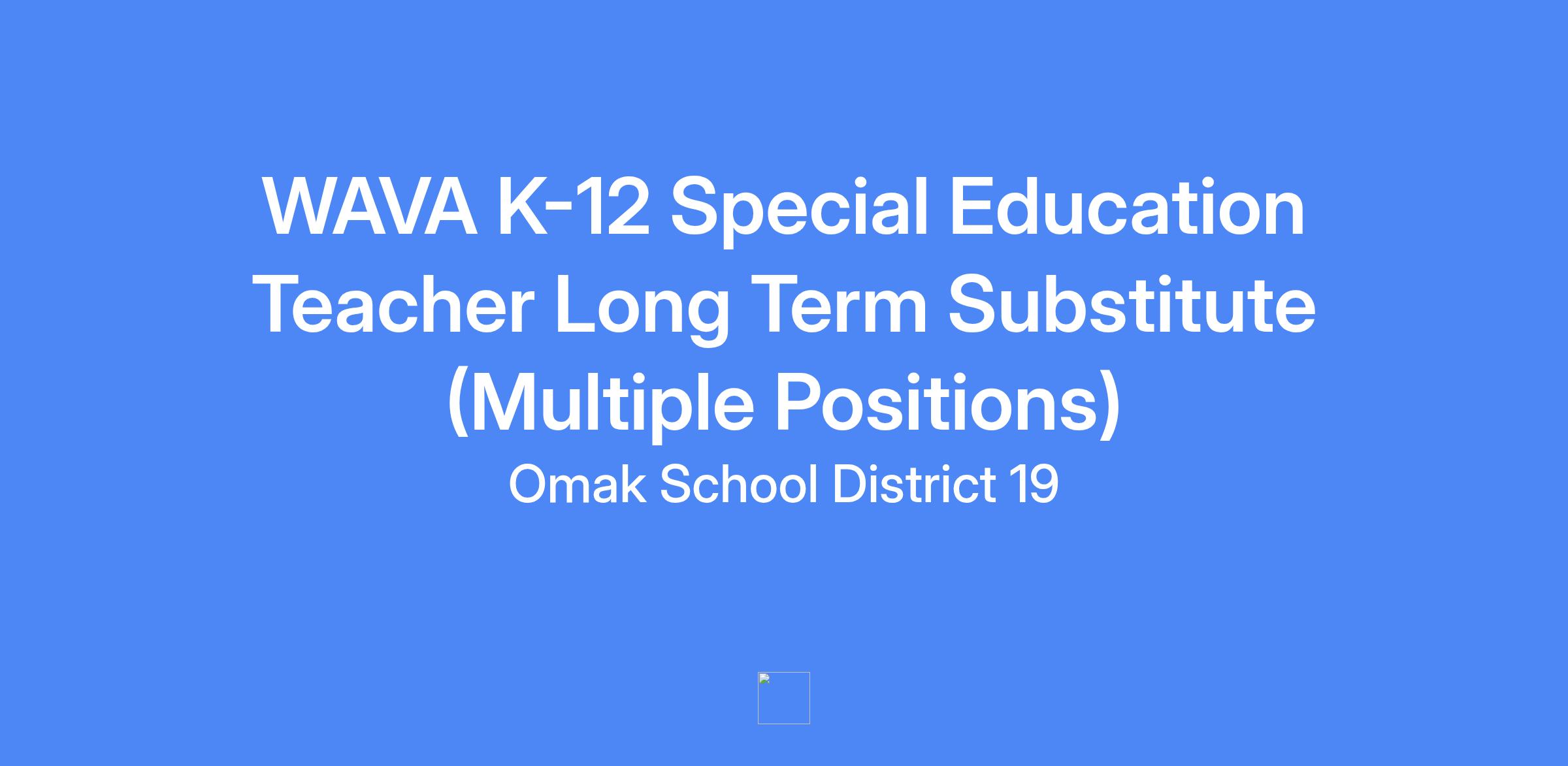WAVA Special Education Teacher Long Term Substitute (2025-2026 SY)