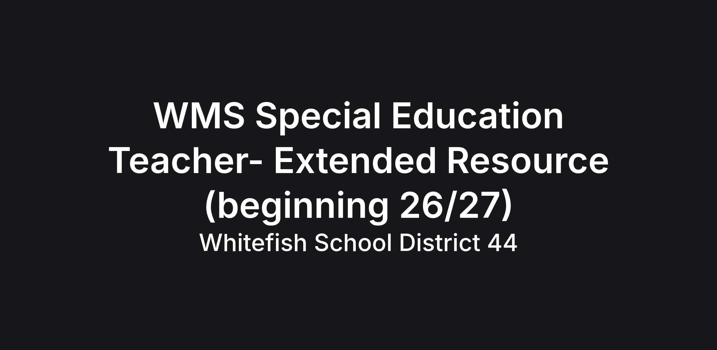 AREA: Whitefish Middle School Special Education Teacher - Extended Resource