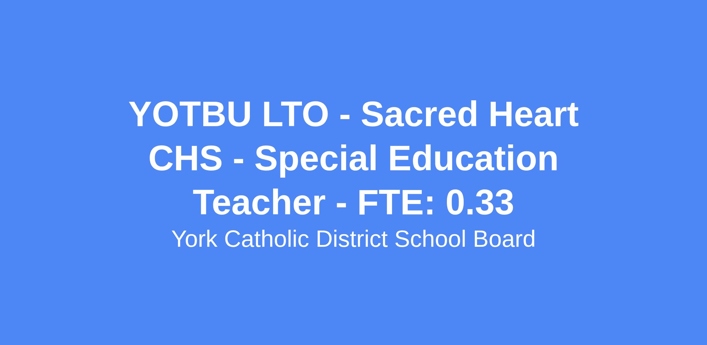 YOTBU LTO - Sacred Heart CHS - Special Education Teacher - FTE: 0.33